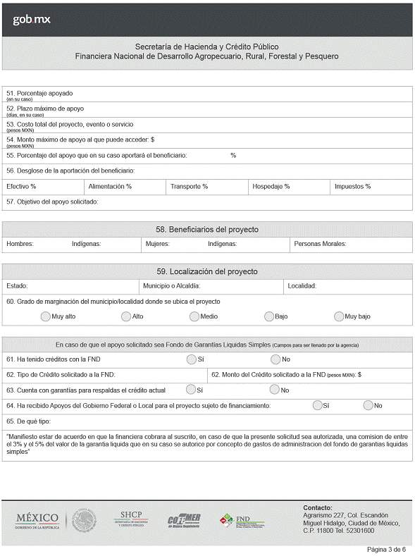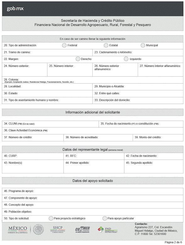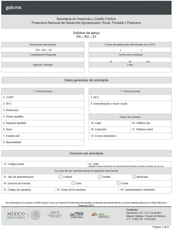 formato FN-RO-01 “Solicitud de Apoyo”, contenido en las Reglas de Operación de