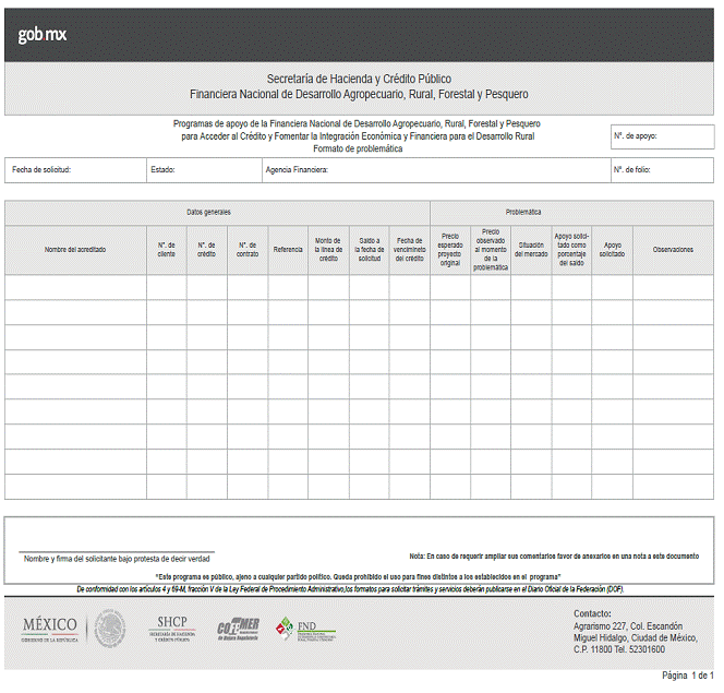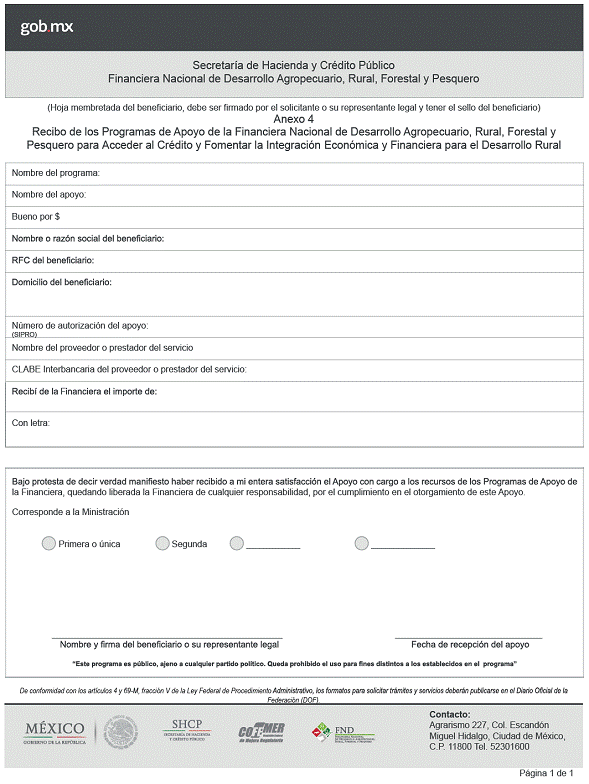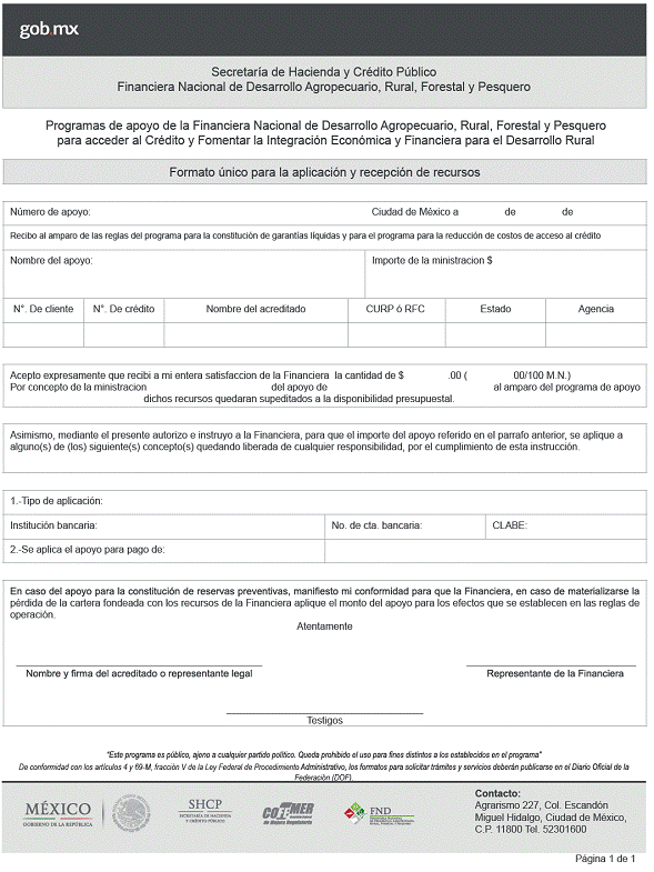 ARTICULO PRIMERO.- Se da a conocer el formato oficial a cargo de la Financiera Nacional de