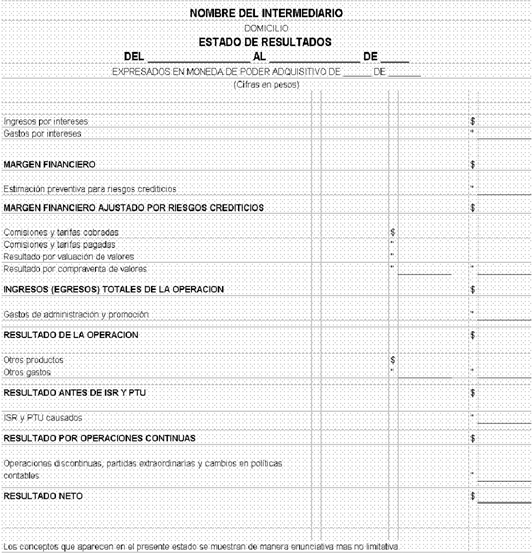 El presente lineamiento tiene por objetivo establecer las características generales, así como la estructura que debe tener el estado de resultados, con el propósito de homologar la presentación de este estado financiero entre las sociedades. 1